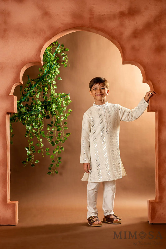 Boys kurta set - parrot embroidery Kurta in Chanderi