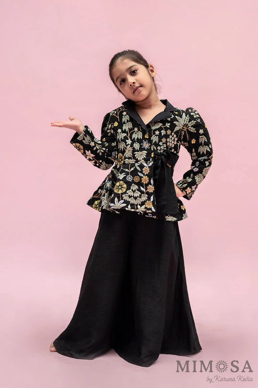 Embroidered Black Jacket Style Top And Flared Palazzo