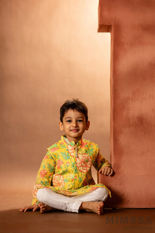 Floral kurta with matching bundi