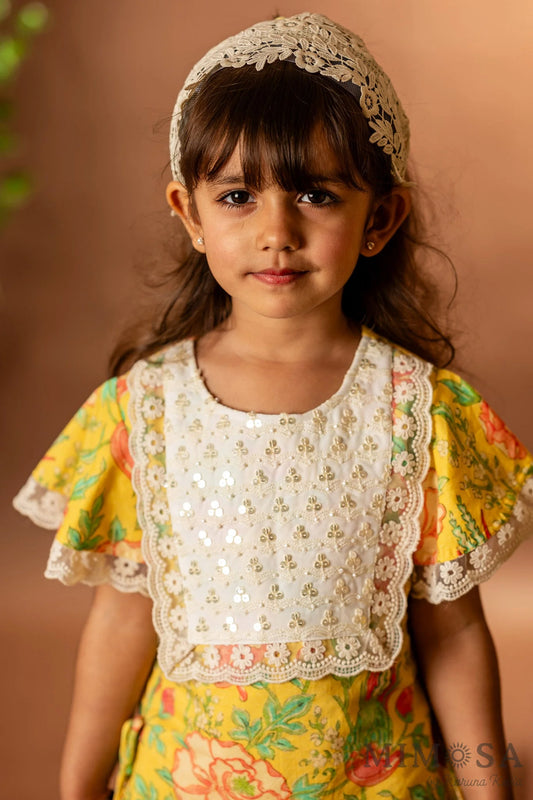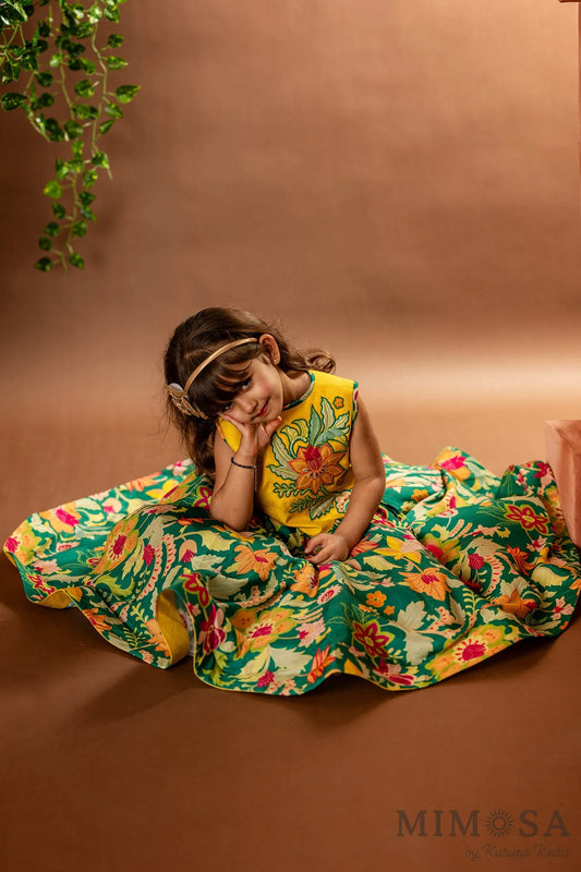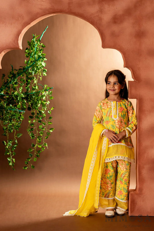 Frilly top with Kalamkari printed palazo set