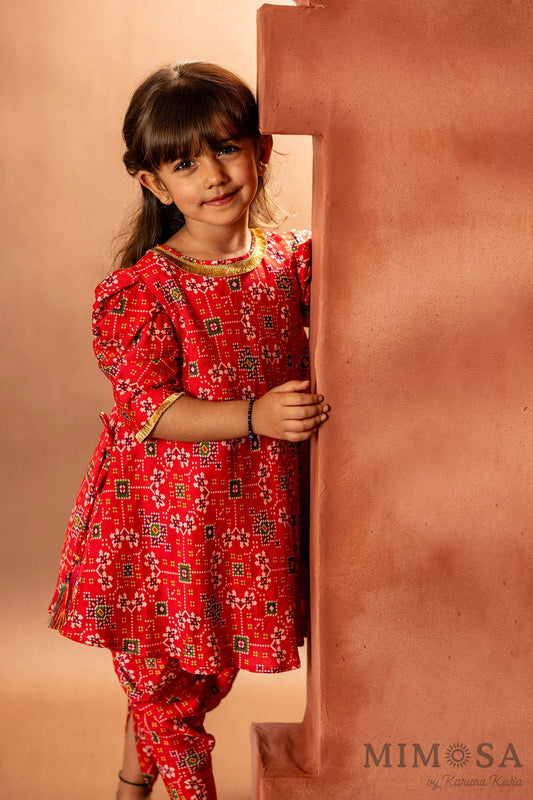 Frockstyle patola suit with dhoti
