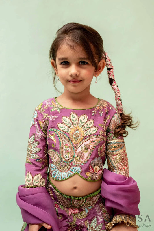 Fully embroidery paisley lehnga set with organza dupatta
