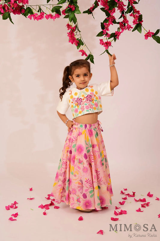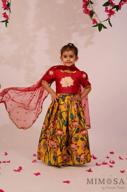 Multicolor Kalamkari prints skirt and top in vibrant hues
