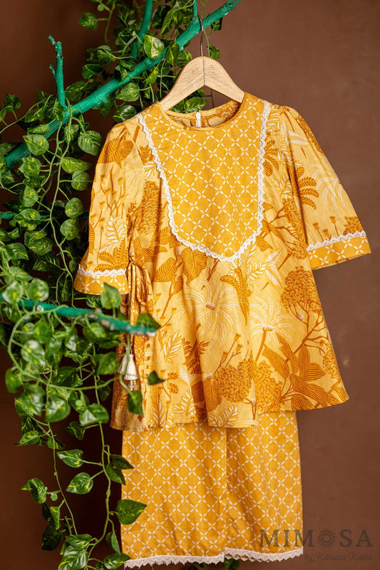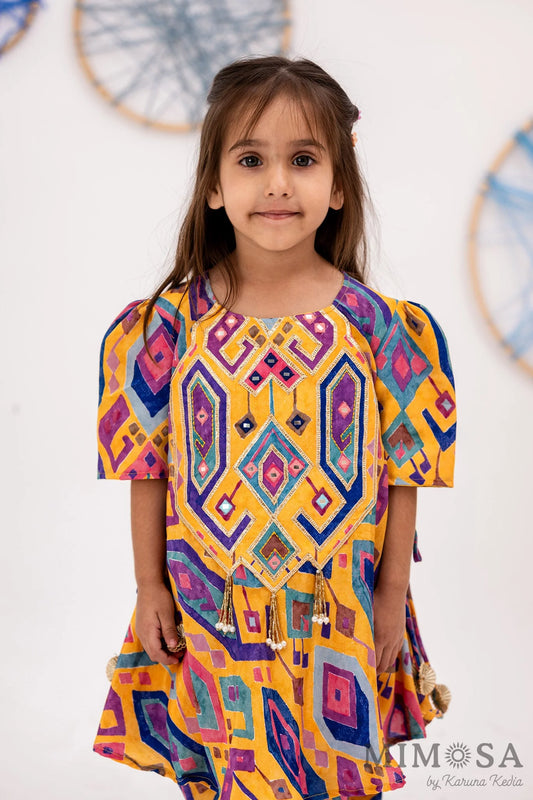 Mirror Work yolk printed Kurta in Muslin with tulip pants