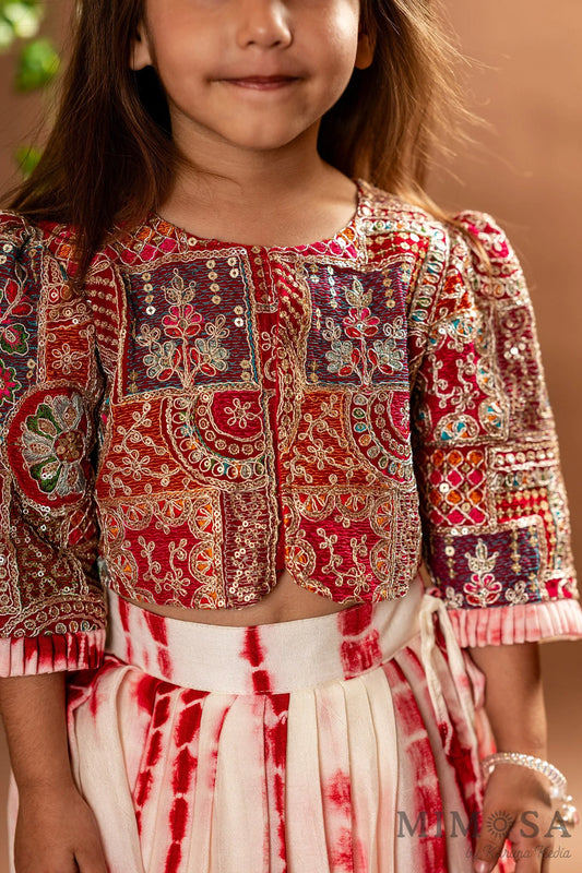 Tie & dye pleated skirt with embroidered top