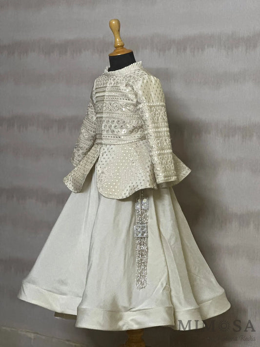 Zari Kota tissue Lehnga with Bambar silk peplum top with handwork and lined with cotton silk