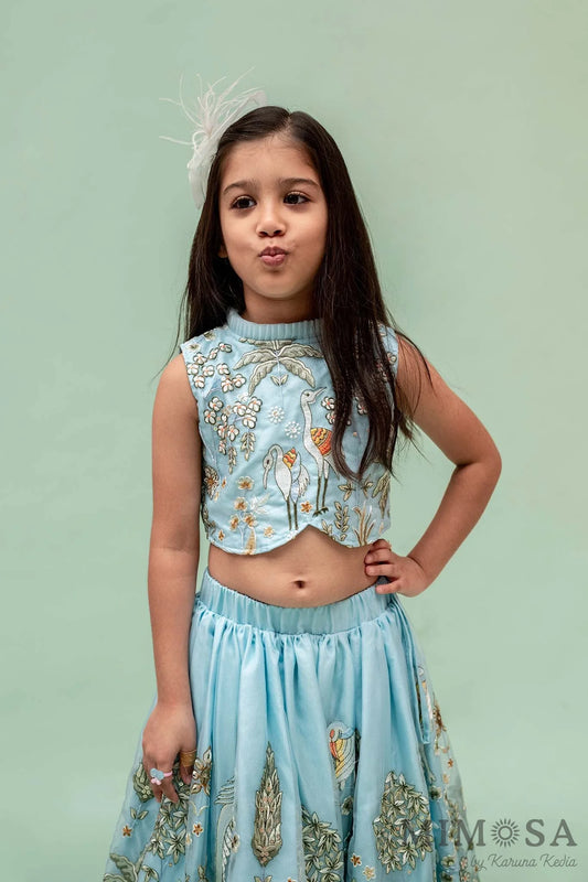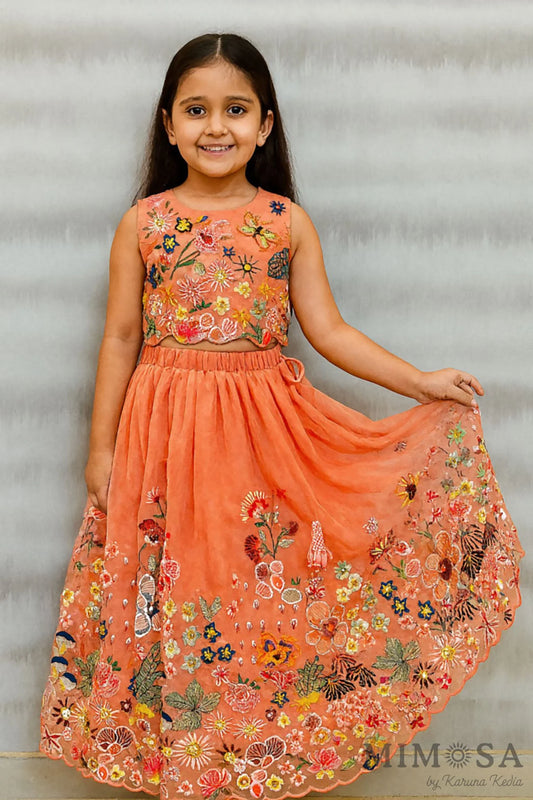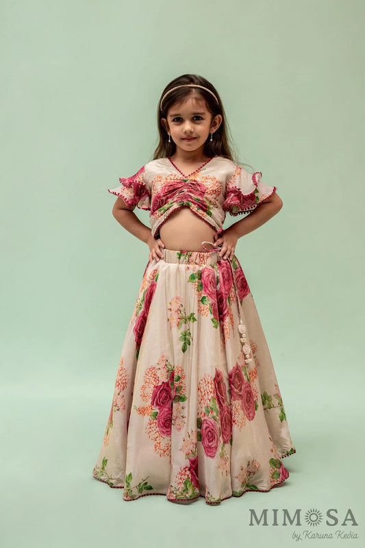 Flamingo lehnga set in organza with cotton silk lining