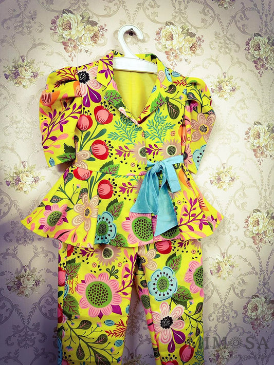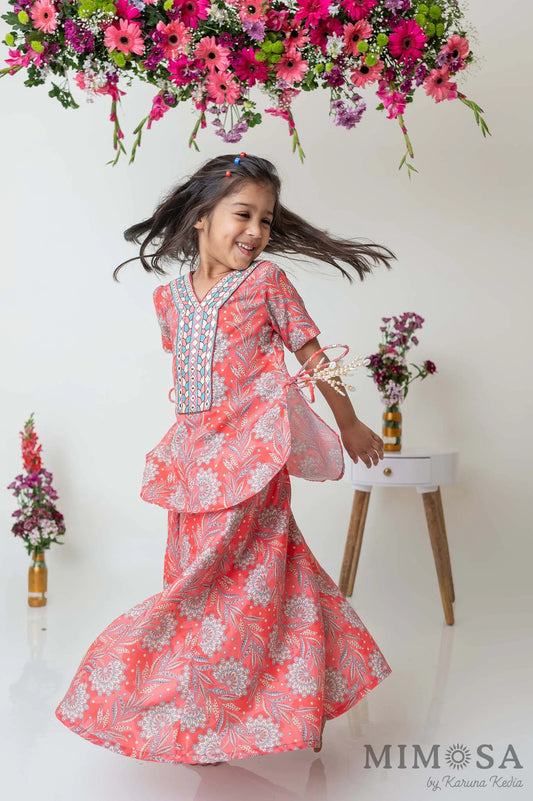 Frilly top with Kalamkari printed palazo set