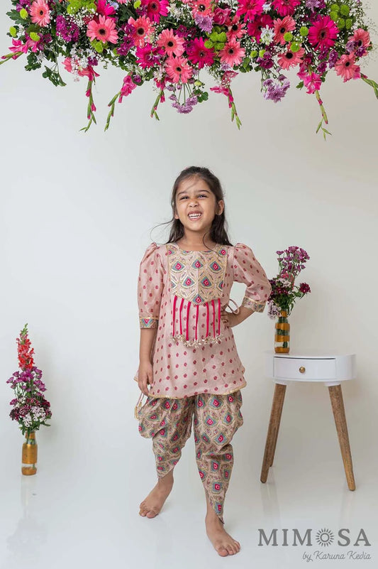 Gota embellished frockstyle kurti with dhoti pants