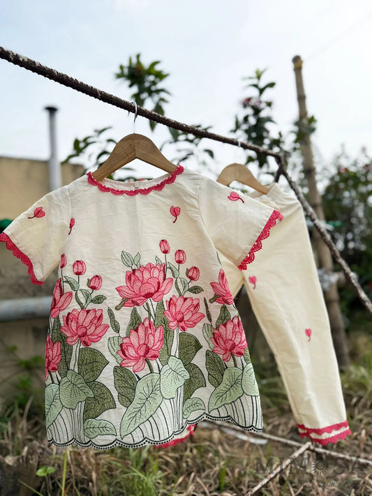 Lotus embroidered Kurta coord set