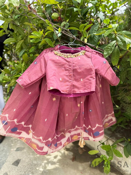 Onion pink Jamdaani pleated skirt top