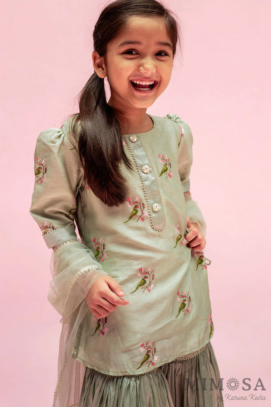 Side-Knot Detailed Elegant Green Kurti And Sharara With Matching Dupatta