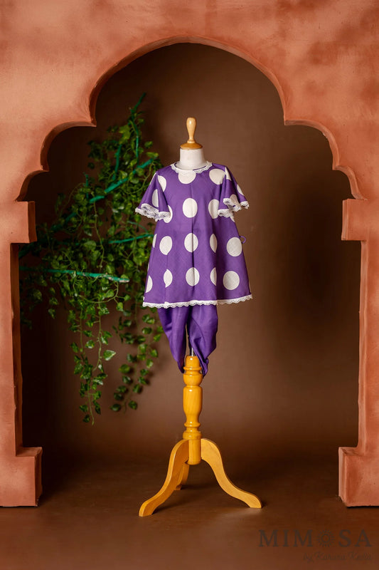 Polka dots frockstyle kurti with dhoti pants