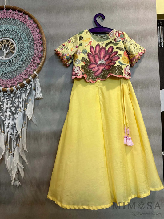 Scalloped crop top with divided skirt set