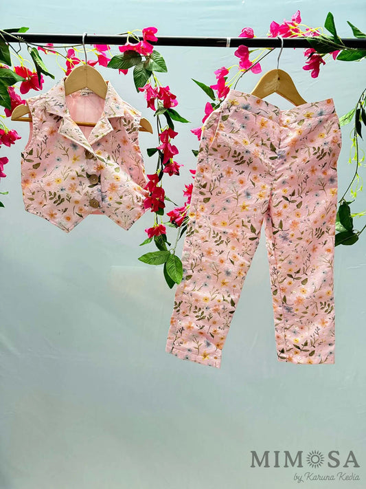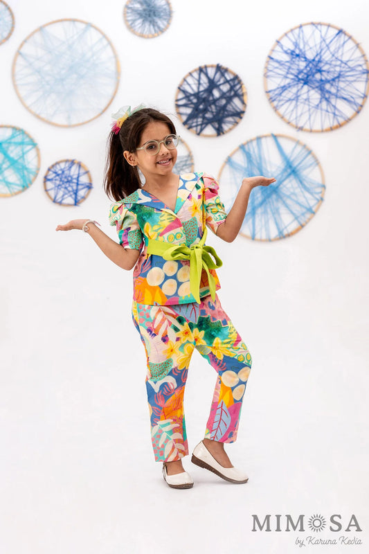 Mirror Work yolk printed Kurta in Muslin with tulip pants