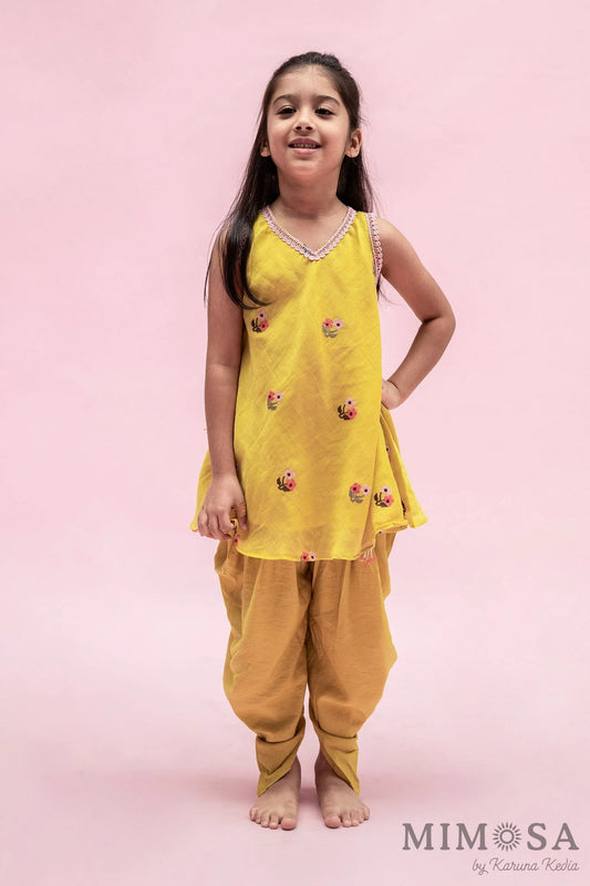 Yellow sharara set with fully embroidered sharara , all lined with cotton silk
