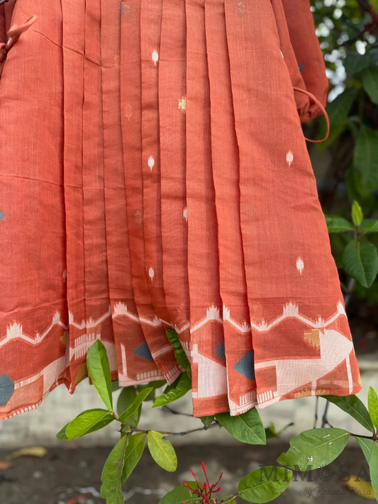 Mal chanderi kurti set with cross stitch embroidery and mal mal lining with cotton silk tulip pants