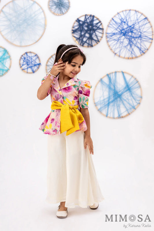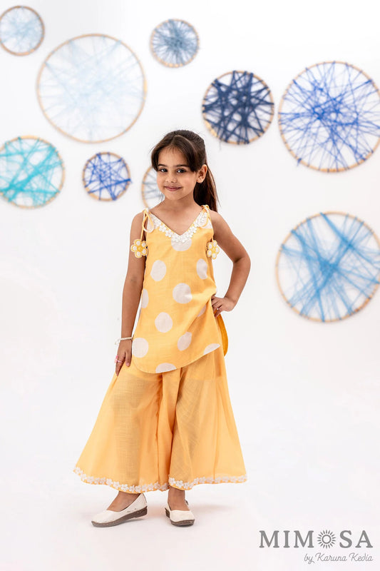 Embroidered yoke, tassel enhanced mustard kurti and pants