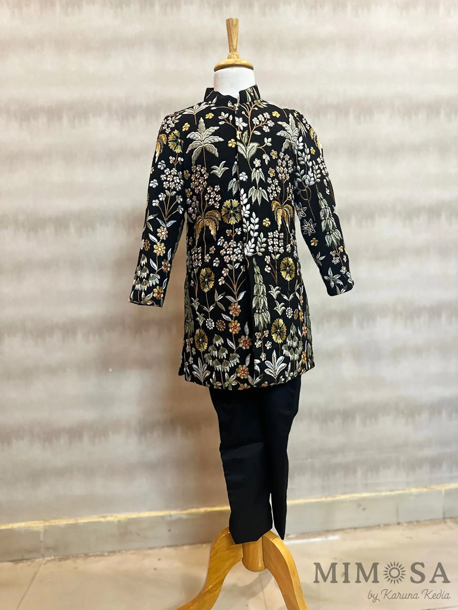 Black indowestern set for boys with pants will full thread work