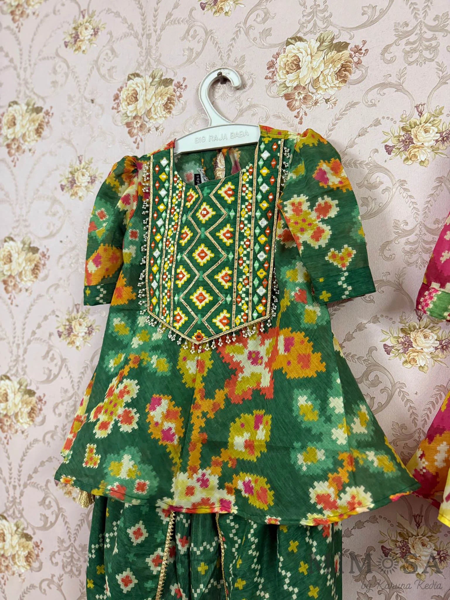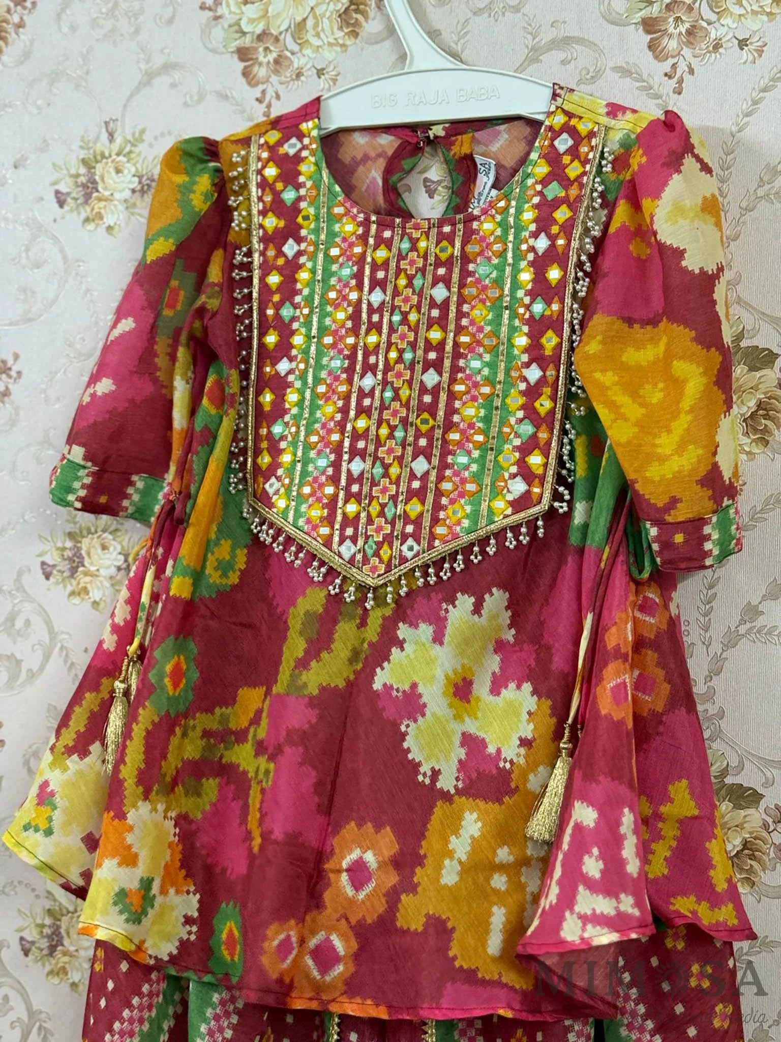 Mirror Work yolk printed Kurta in Muslin with tulip pants