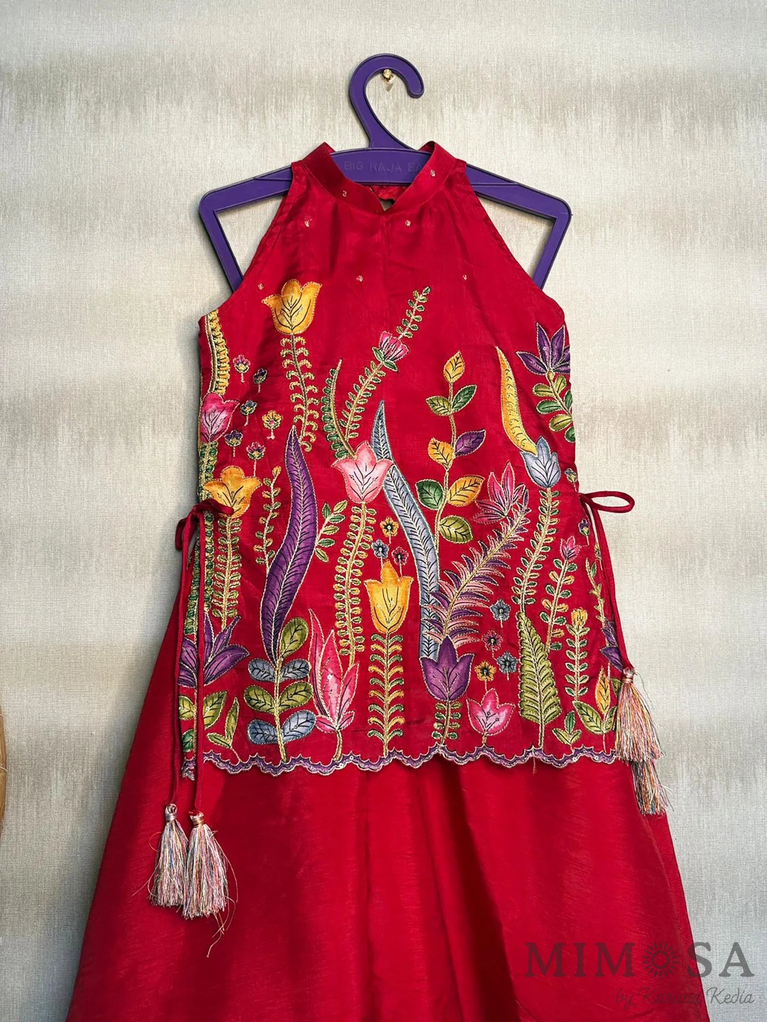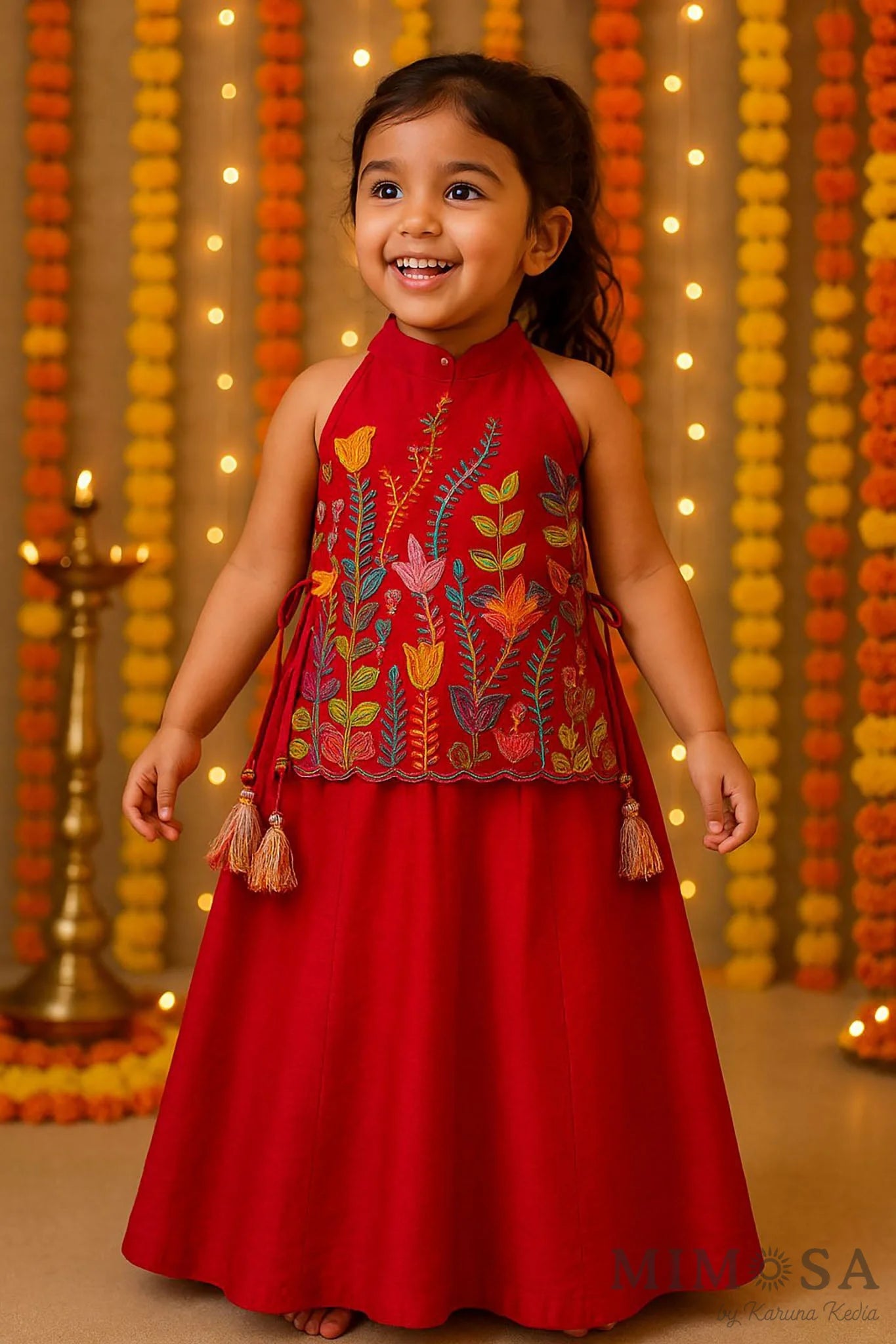 Silk print and embroidery tops with Bambar silk full circle palazzo